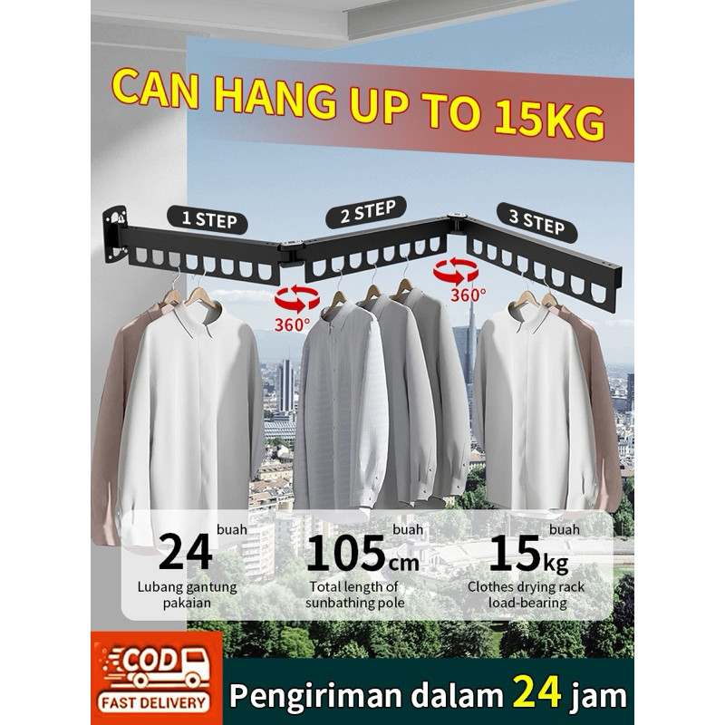 Rak jemuran lipat dinding, tebal dankuat. 360derajat, diakanuntukmenjemur pakaian dan selimut.