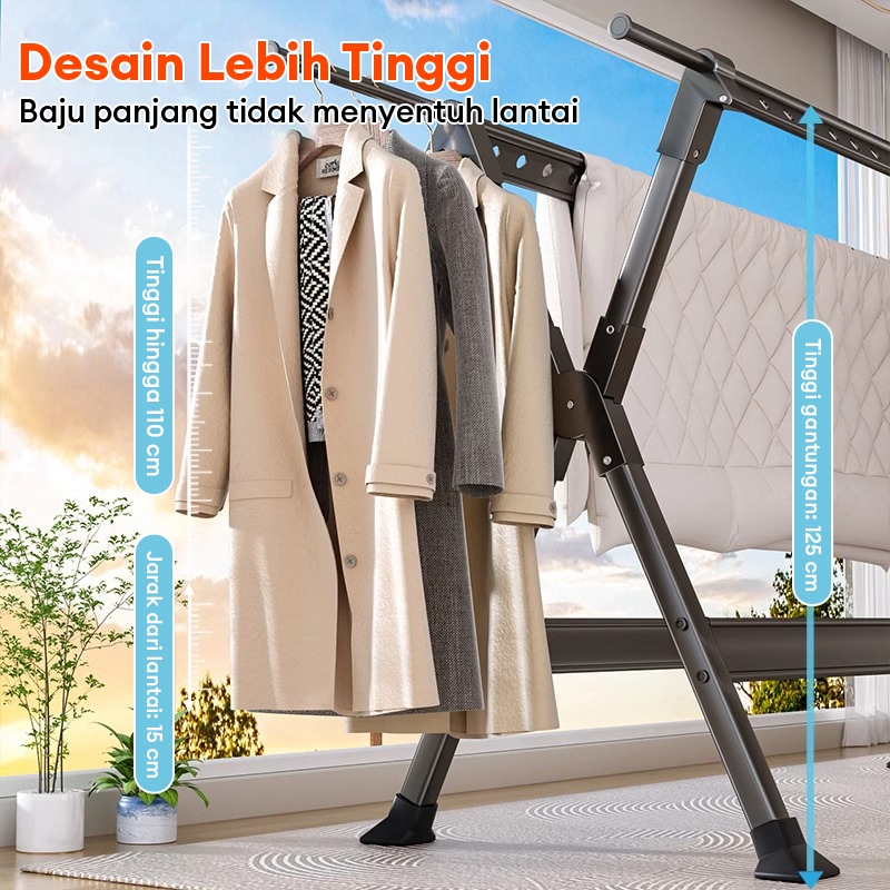 Baru Jemuran Baju stainless steel 130-230cm Tempat jemuran baju lipat Jemuran Hanger Portable