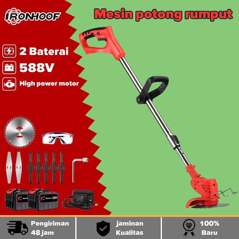 IRONHOOF 588V Mesin Potong Rumput 88V Pemotong Rumput Listrik Pemangkas Rumput Dengan Baterai Li-ion