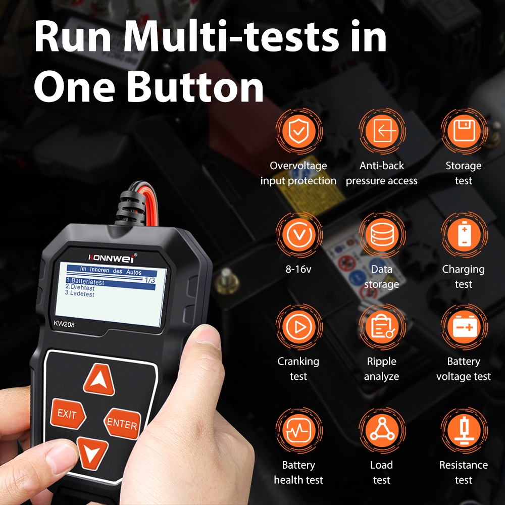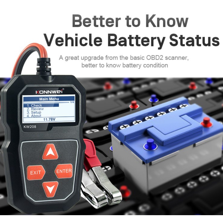 KONNWEI KW208 Pemindai Diagnostik Baterai Otomotif Alat Uji Analisis Baterai 12V Profesional