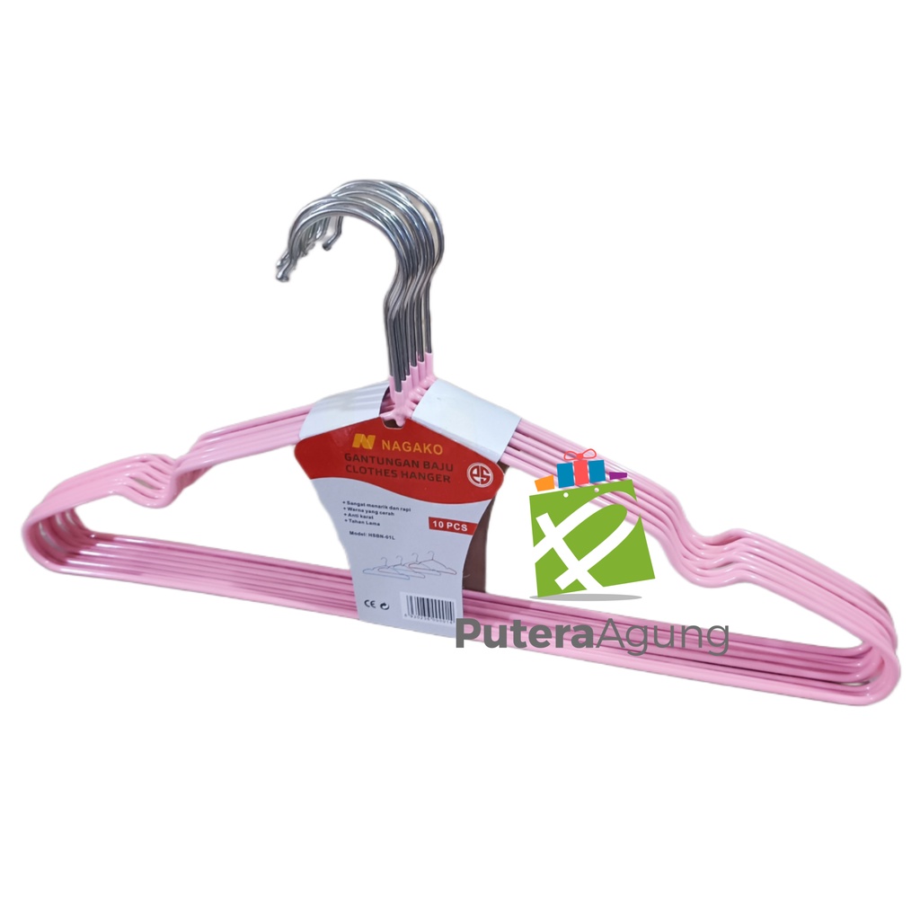HANGER STAINLESS WARNA WARNI TEBAL ISI 10 HANGER SULTAN GANTUNGAN BAJU KAOS KEMEJA