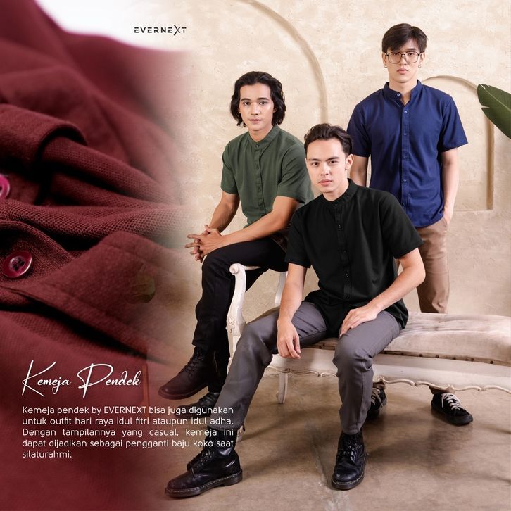 Evernext - Kemeja Polos Pria Baju Kemeja Koko Pria Kemeja Lengan Pendek Pria Kemeja Casual Pria