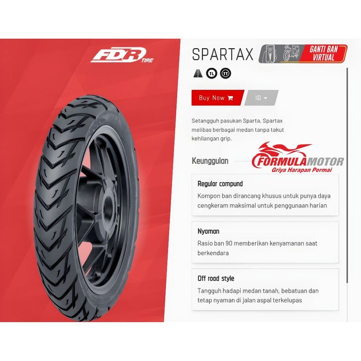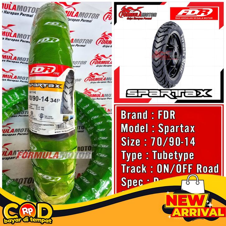 FREE ONGKIR 70/90-14 FDR SPARTAX RING 14 TUBETYPE (DUAL PURPOSE) BAN DEPAN MOTOR MIO, FINO, XEON, SPIN, NEX-1 NON TUBLES