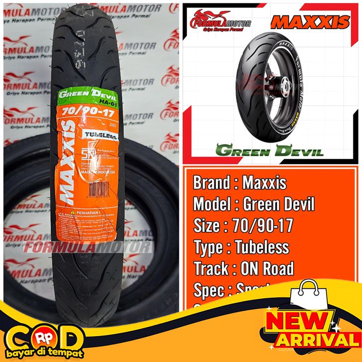 FREE ONGKIR 70/90-17 MAXXIS GREEN DEVIL MA-G1 RING 17 TUBELESS - BAN DEPAN SUPRA, KARISMA, REVO, VEGA, JUPITER