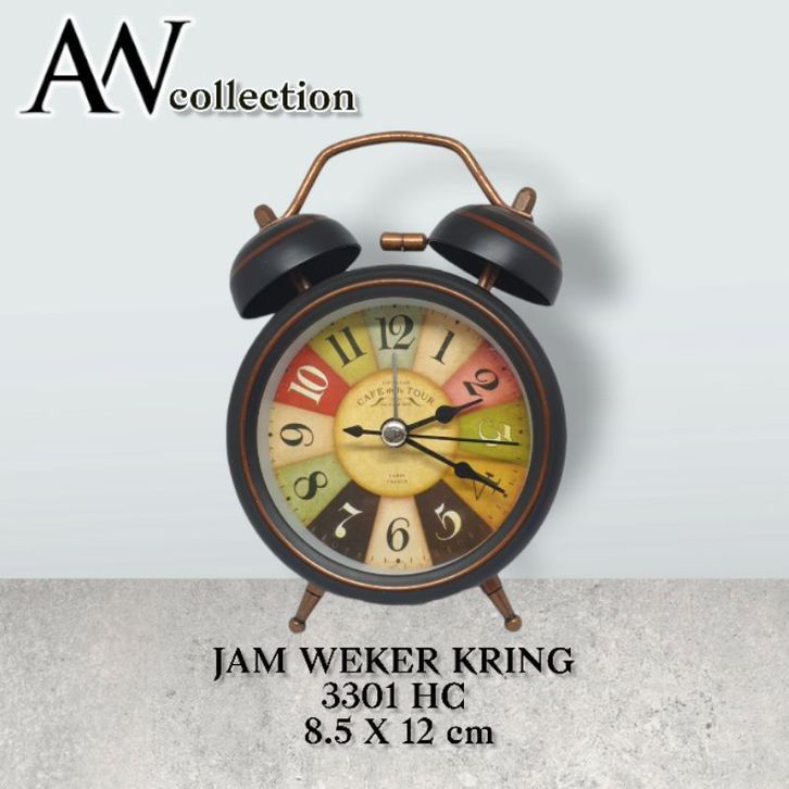 Jam Weker Kring Klasik 3301 | Hitam | Jam Meja Unik | Dekorasi Meja | Jam Alarm | Weker | Dekorasi