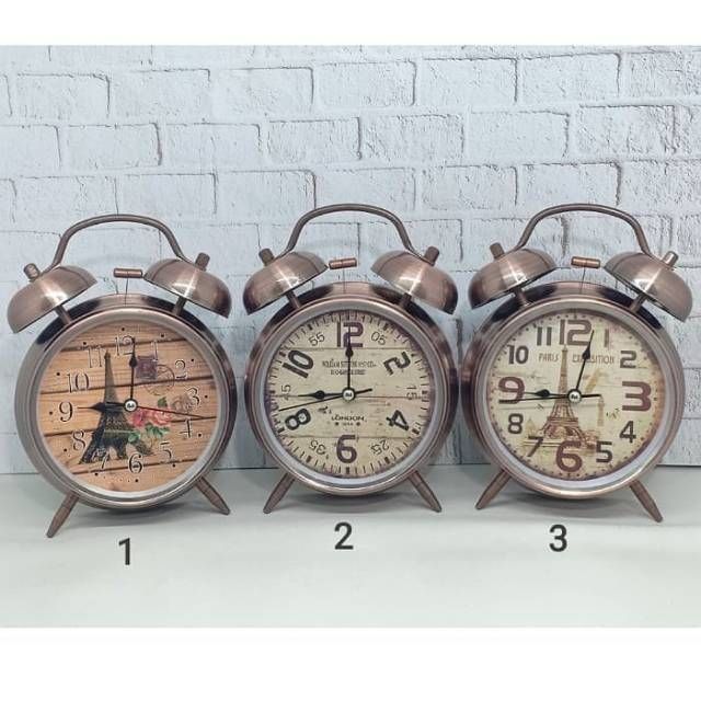 Jam weaker stainless warna tembaga/ jam meja alarm/ jam weaker kar-akter/ souvenir/ kado