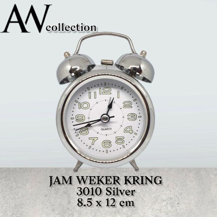Jam Weker Alarm Kring Silver dengan 3 Motif / Glow in the Dark / Hologr / Jam Meja / Jam alarm dekorasi