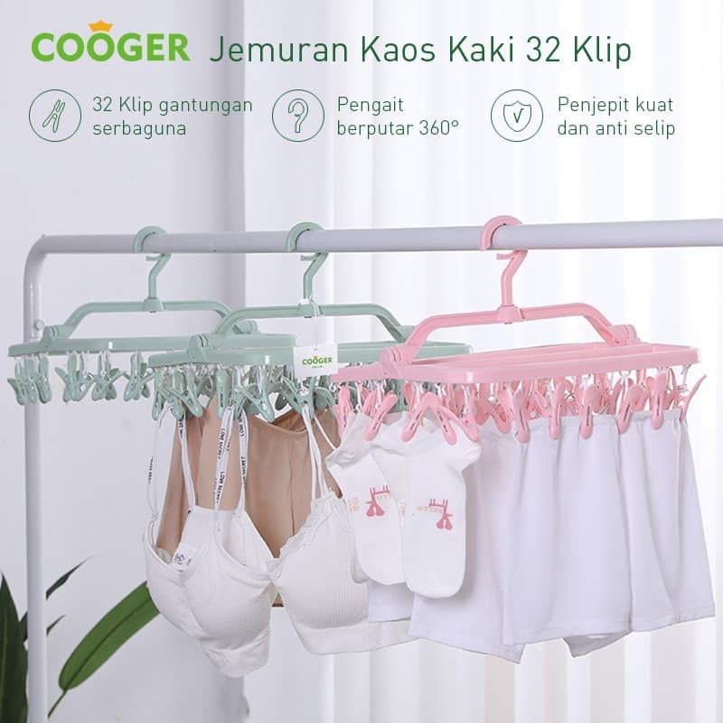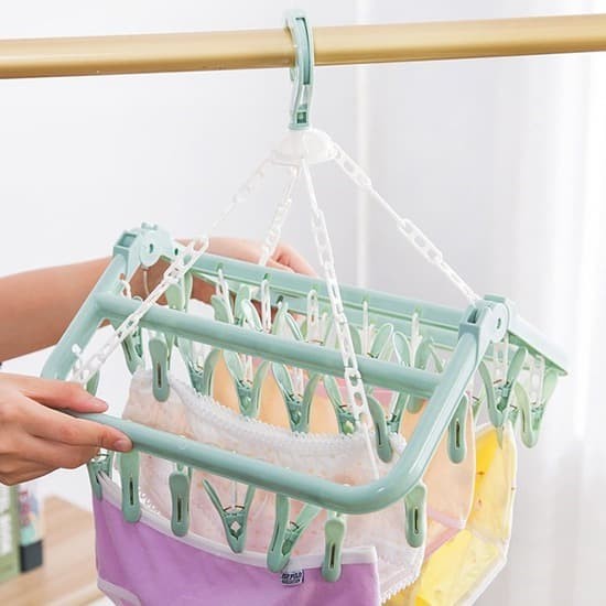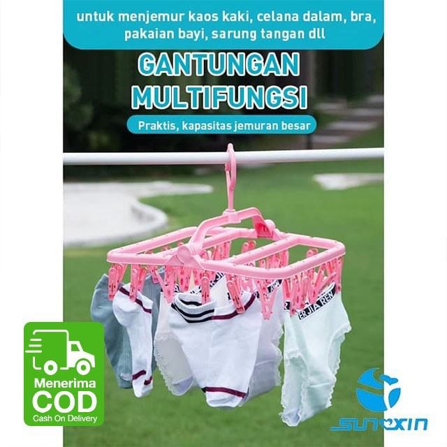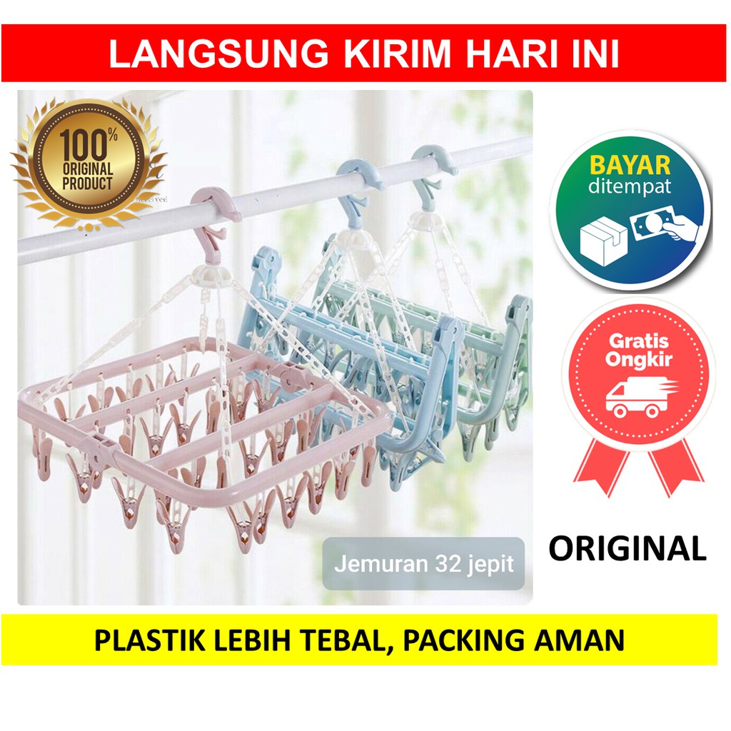 Hanger Jemuran Gantungan 32 Jepitan Baju Lipat Putar Jepit Hook Praktis Bayi Kaos Kaus Kaki Bra