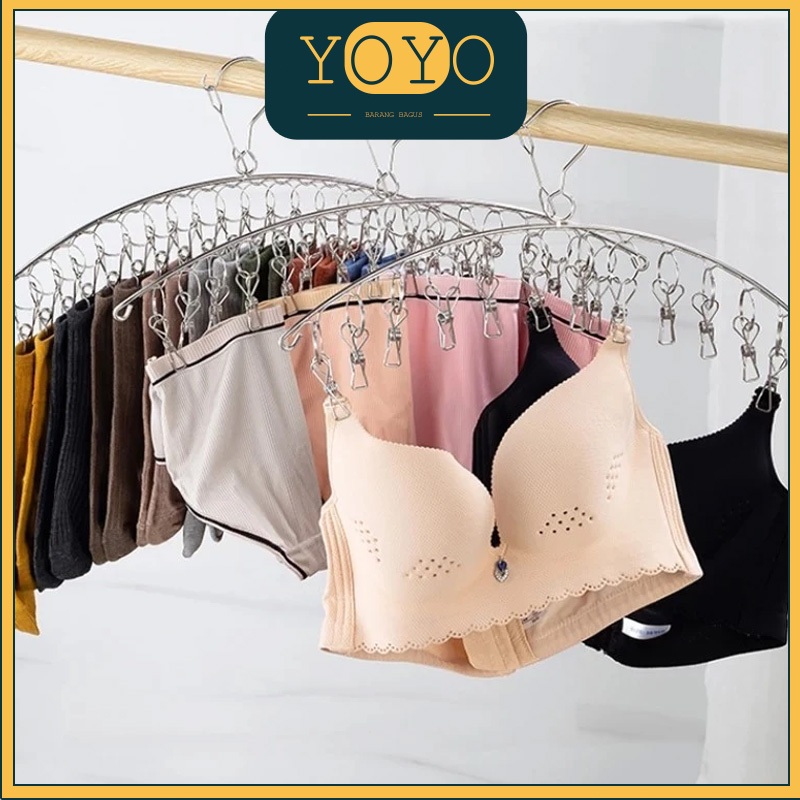 Jemuran Baju 20 Jepitan Hanger Stainless Steel Premium | Jemur Baju Bayi / Kaos Kaki / Celana Dalam / Bra / Pakaian dll