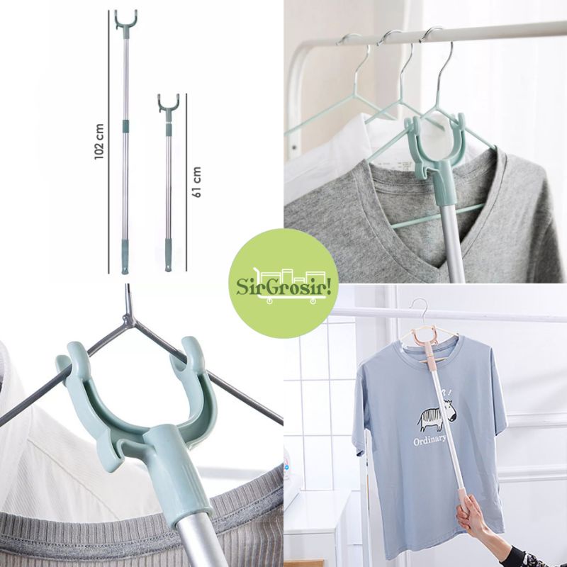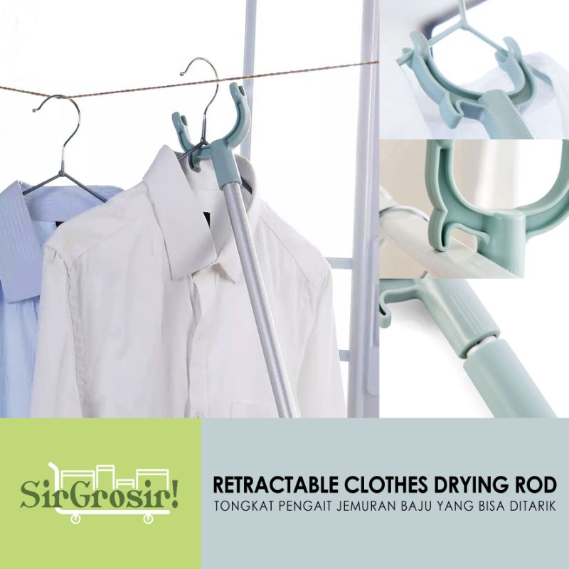RETRACTABLE CLOTHES DRYING ROD - Tongkat Pengait 1 meter Hanger Jemuran Tiang Penyangga Gantungan Baju Panjang Bisa Dita