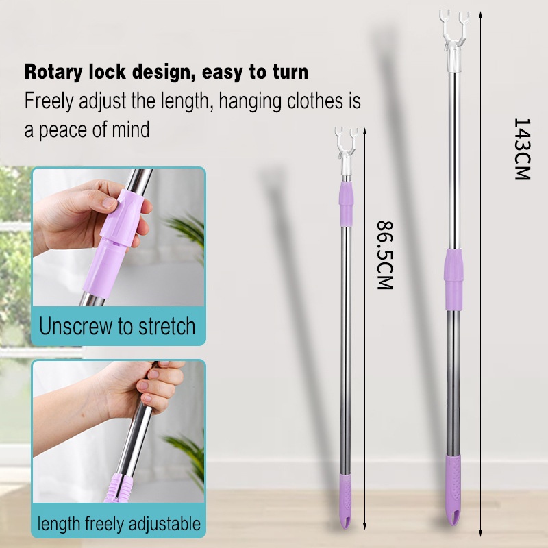 丨Bisa Dipanjangin丨Tongkat Pengait Jemuran/Tongkat Jemuran Pengait Baju/Tongkat Hanger Stainless