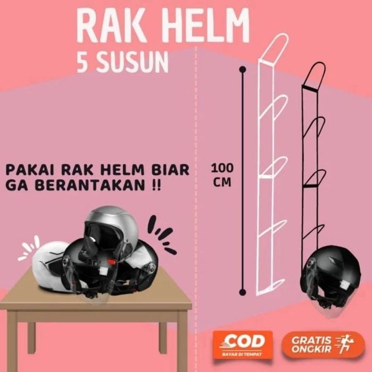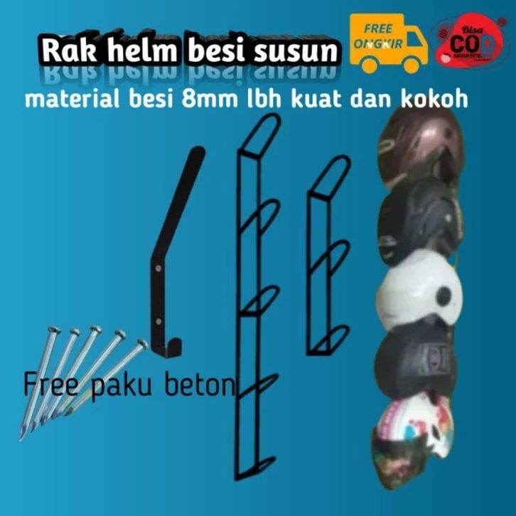 BARU [FREE DUS] RAK HELM GANTUNG BESI 5 SUSUN /RAK GANTUNGAN HELM KOKOH KUAT NEMPEL DINDING TEMPAT HELMET icadb