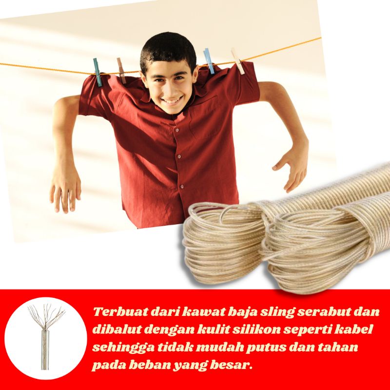 Tali Kawat Jemuran Sling Kuat Balut Silikon Tali Sling Jemuran 20M 30M