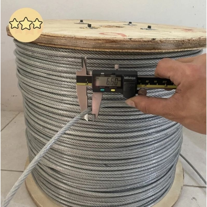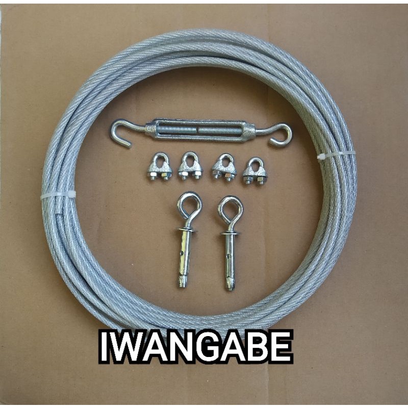 Paket tali kawat seling sling jemuran kuat dilapisi pvc 6mm tahan lama anti karat 6 mm milimeter