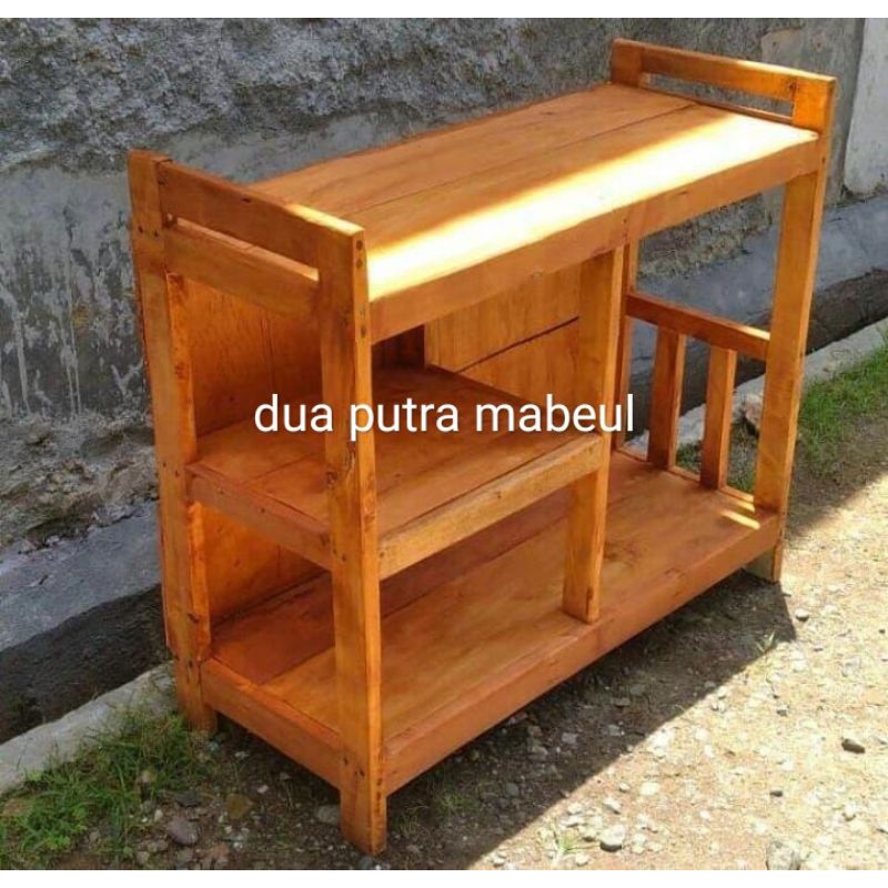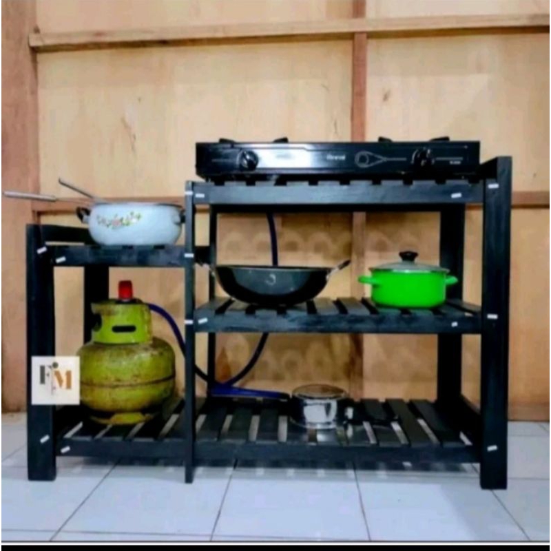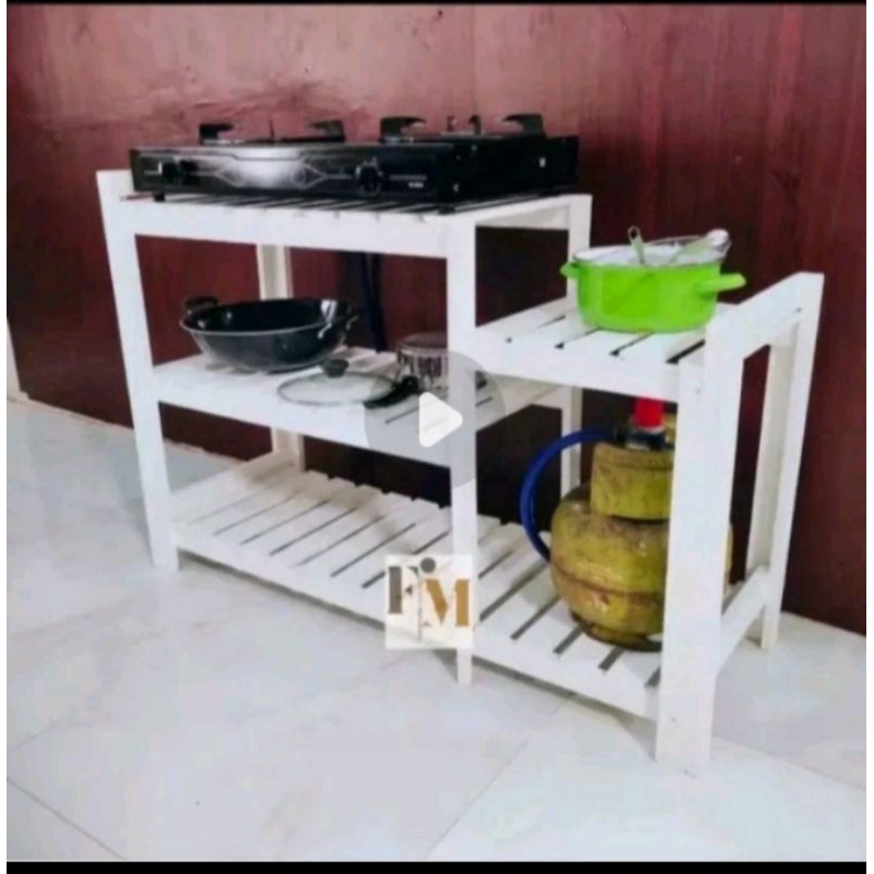 MEJA RAK KOMPOR 2 TUNGKU KAYU SERBAA MURAH RAK DAPUR PENGHEMAT TEMPAT TERLARIS