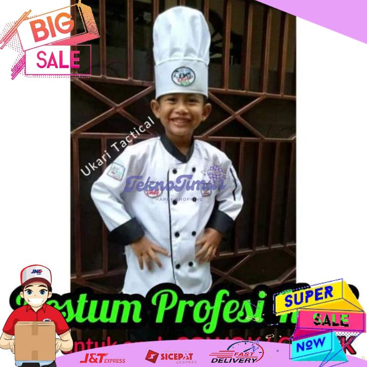 Baju koki master chef anak kostum profesi seragam karnaval laki-laki perempuan