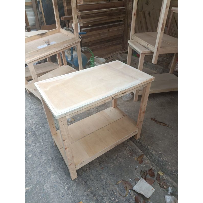 TERMURAH meja susun 2 70x40x55 bahan jatibenda /mentahan buat kompor 2 tungku/satu tungku non finishing