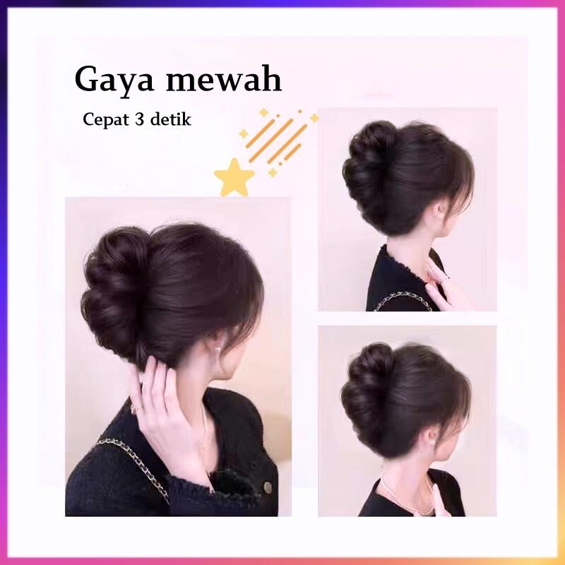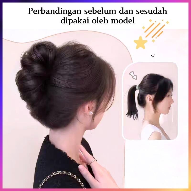 HIL-6614 Wig kepala kuncup bunga wig Sanggul Jepit Rambut Palsu Ponytail Model Ekor Kuda Konde Rambut Palsu Cepol Jedai