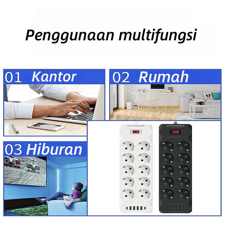 Stop Kontak Stop Kontak 2500W Power Strip Power Socket Charger Stop Kontak Usb Charger 2M Power Socket Elektrik 4USB 3