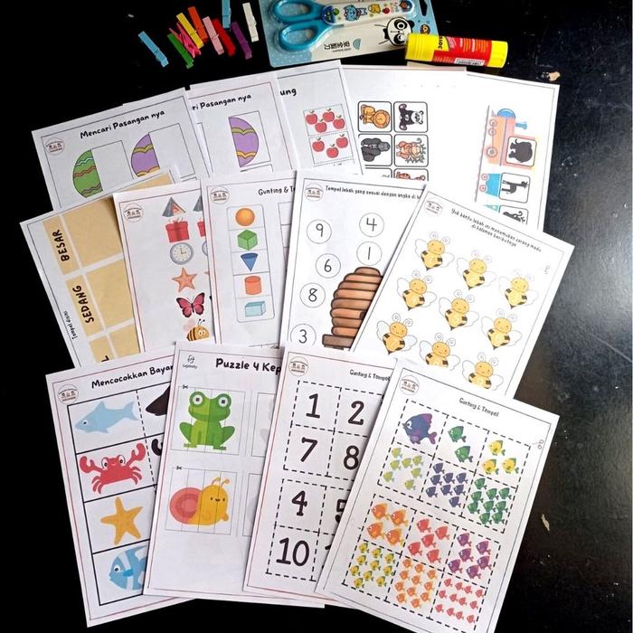 40 hal Worksheet Anak 2 3 4 5 6 Tahun Aktivitas Menggunting Dan Menempel TK PAUD PRESCHOOL - Gunting Tempel 40 Hal