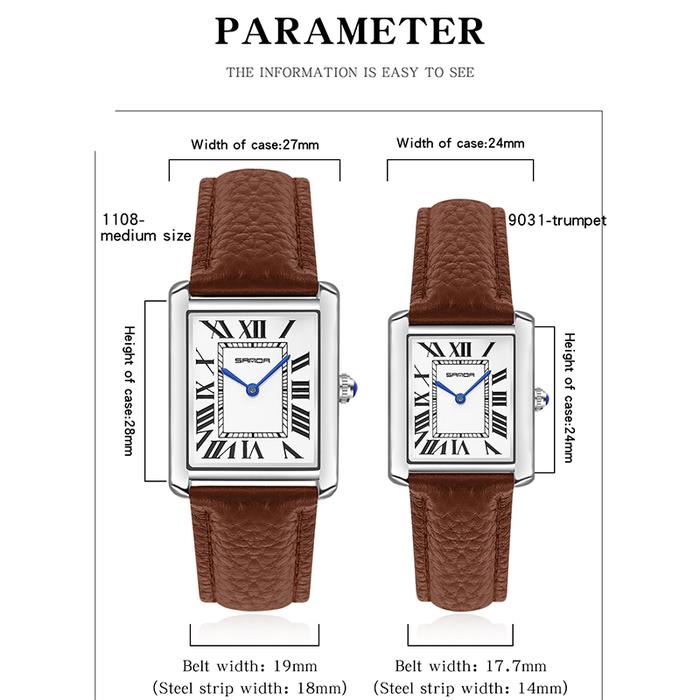 SANDA 1108 9031 Jam Tangan Kuarsa Pasangan Jam Tangan Wanita Desain Dial Persegi Tahan Air 30 Meter