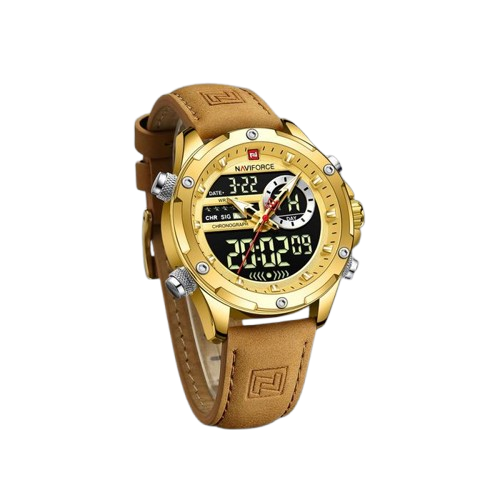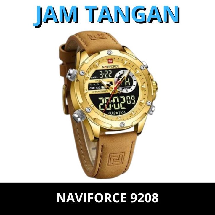 JAM TANGAN PRIA NAVIFORCE 9208 ORIGINAL KULIT LEATHER DOUBLE TIME ANALOG DIGITAL FREE BOX
