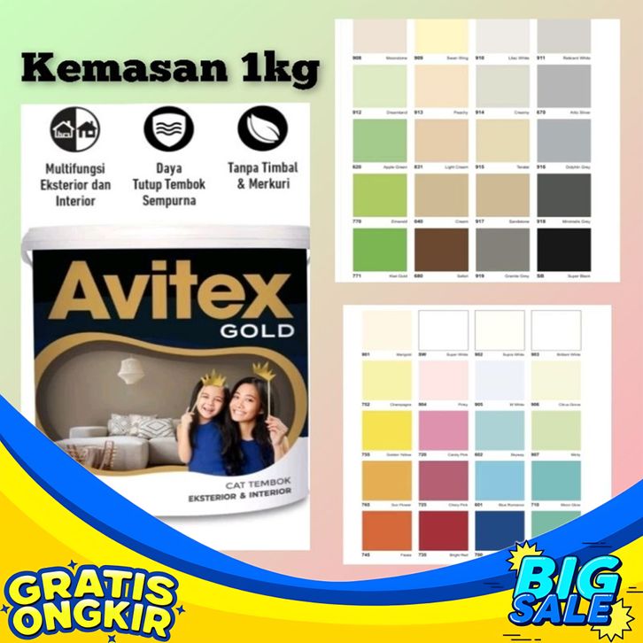 040/cream, 601/blue romance, 602/skyway, 620/Apple green, 670/artic silver, 680/safari, 700/azure blue, 710/moon glow, 712/telur bebek, 720/candy pink, 725/Cherry pink, 735/bright red, 736/red chili, 745/fiesta, 752/champagne, 755/golden yellow, 765/sunflower, 770/emerald, 771/kiwi gold, 831/light cream, 901/marigold, 902/Supra white, 903/briliant white, 904/pinky, 905/m white, 906/Citrus grove, 907/minty, 908/moonstone, 909/swan wing, 910/Lilac white, 911/reticent white, 912/dreamland, 913/peachy, 914/creamy, 915/teratai, 916/dolphine grey, 917/sandstone, 918/minimalis grey, 919/granite grey, Blewah, Hijau sage, Pink love, Putih salju, SB/super black, Sw/super white, Ungu magic