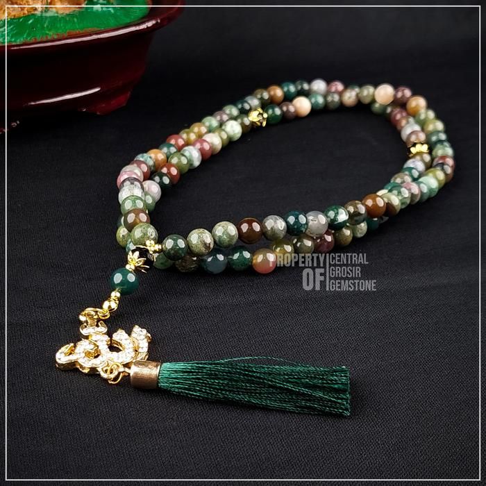Tasbih Giok Asli Natural Green Lumut Suliki Batu Natural Jade 99 Butir