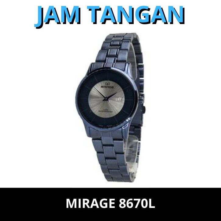Jam Tangan Wanita Mirage 8670L Watch Official Original Cantik Elegant Rantai Biru Tgl 8670L