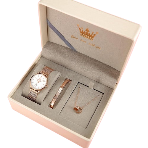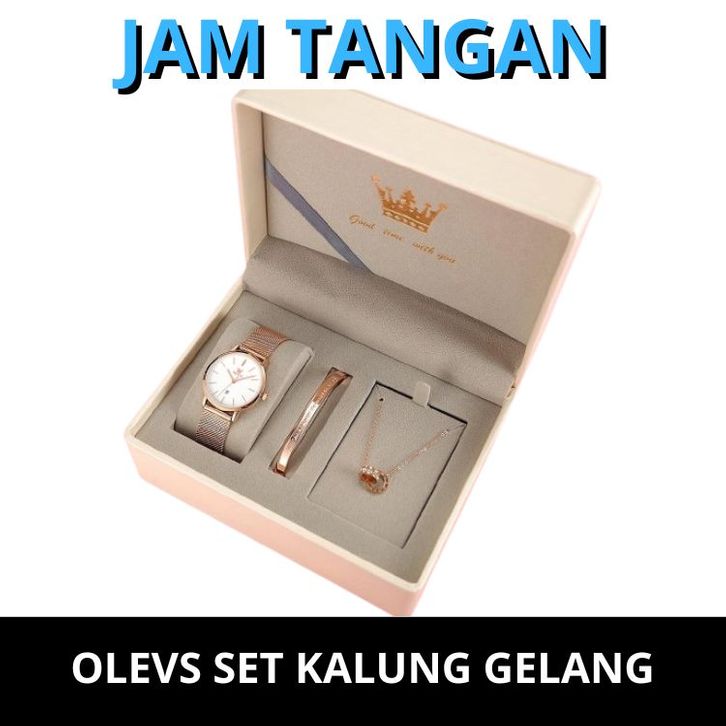 Jam Tangan Wanita OLEVS Set Kalung Gelang Original Asli Untuk Tahan Air Rose Gold Lady Girl Watch