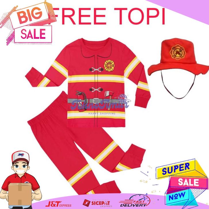 KOSTUM BAJU ANAK DAMKAR PANJANG FREE TOPI