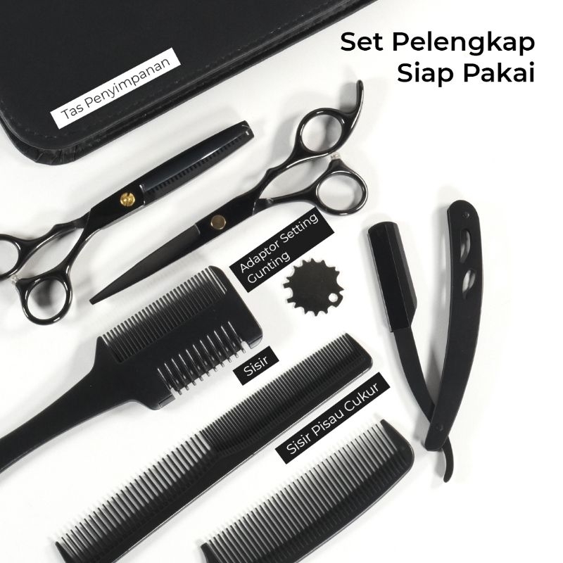 1 Set Alat 8 in 1 Gunting Potong Rambut Premium Salon Barbershop Profesional Cukur Pangkas Sasak gunting rambut barber s