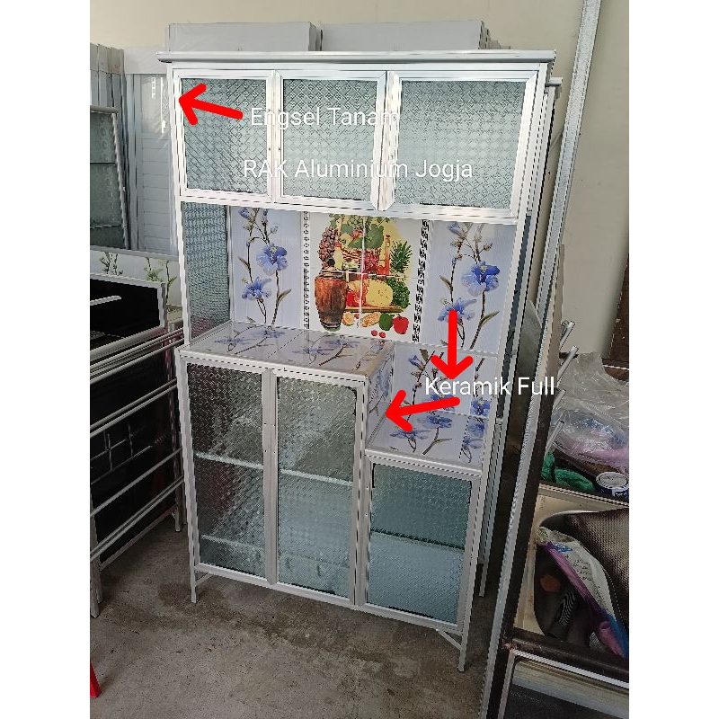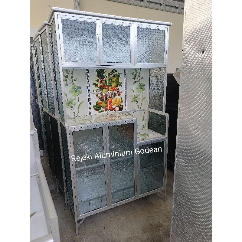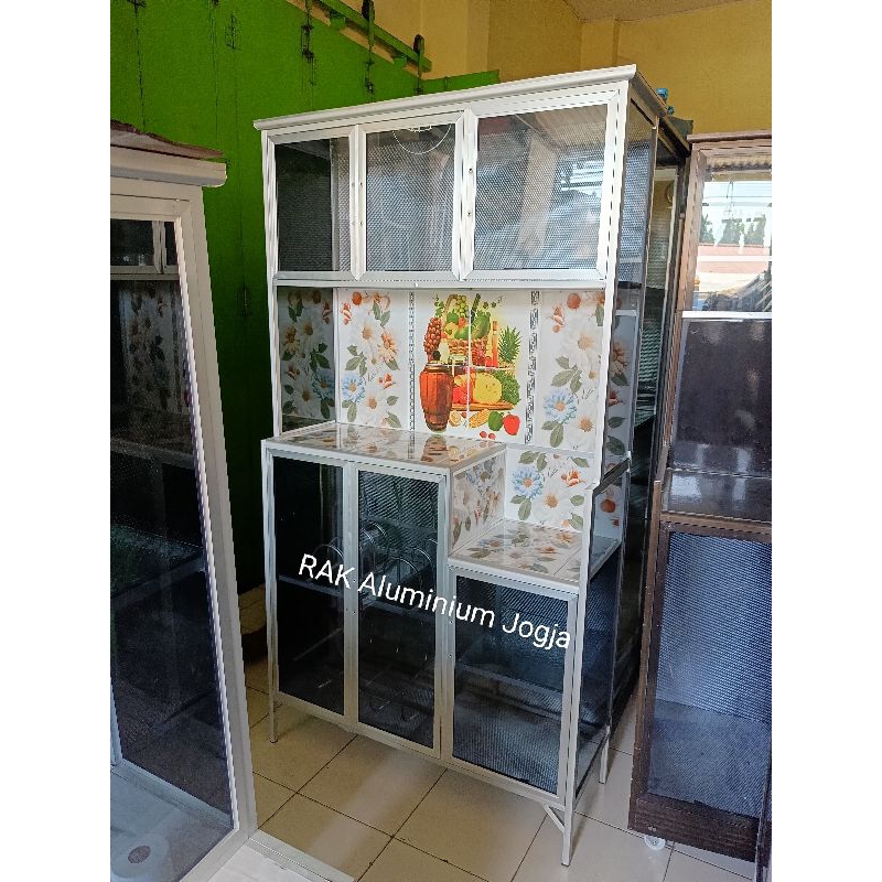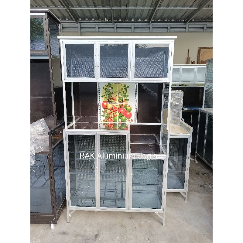 Rak piring aluminium Lemari Dapur keramik full plat bawah dan belakang Tinggi 170