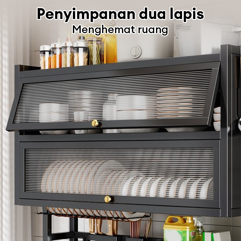 Rak Piring Stainless Steel Dua Lapis Dengan Penutup Rak Dapur Multifungsi Kabinet Rak Penyimpanan Piring