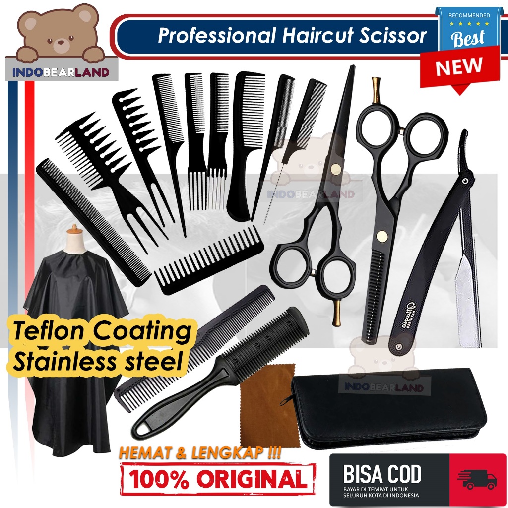 Alat Cukur Gunting Potong Rambut Set Lengkap Sisir Sasak Black Teflon Coating Barber Hair Cutting