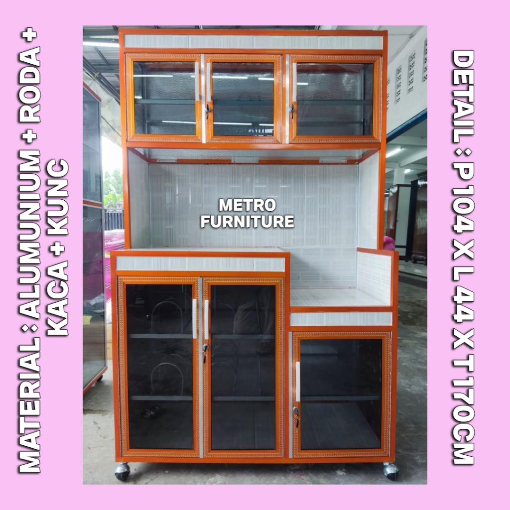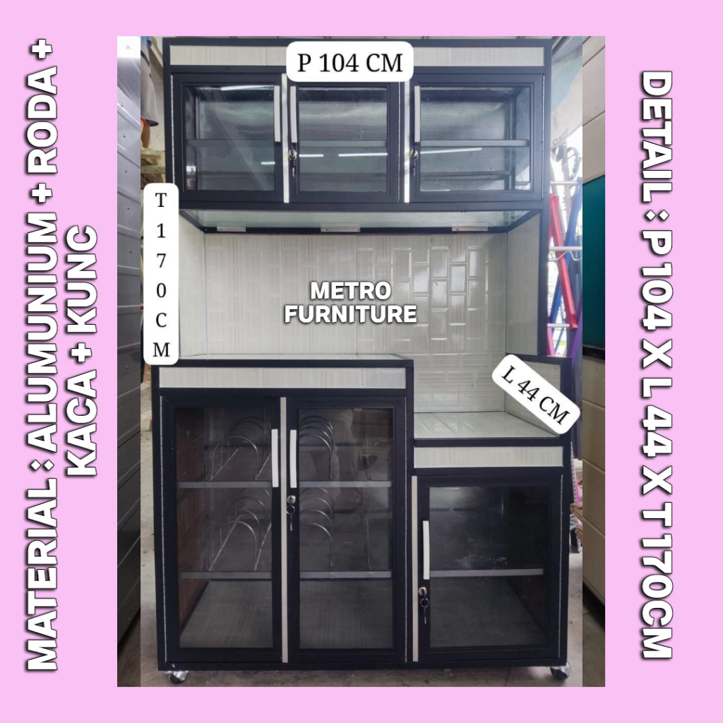 RAK PIRING ALUMUNIUM JUMBO 3 PINTU + RODA 104x44x170CM RAK SAYUR ALUMUNIUM RODA JUMBO 3 PINTU LEMARI PIRING ALUMUNIUM JU