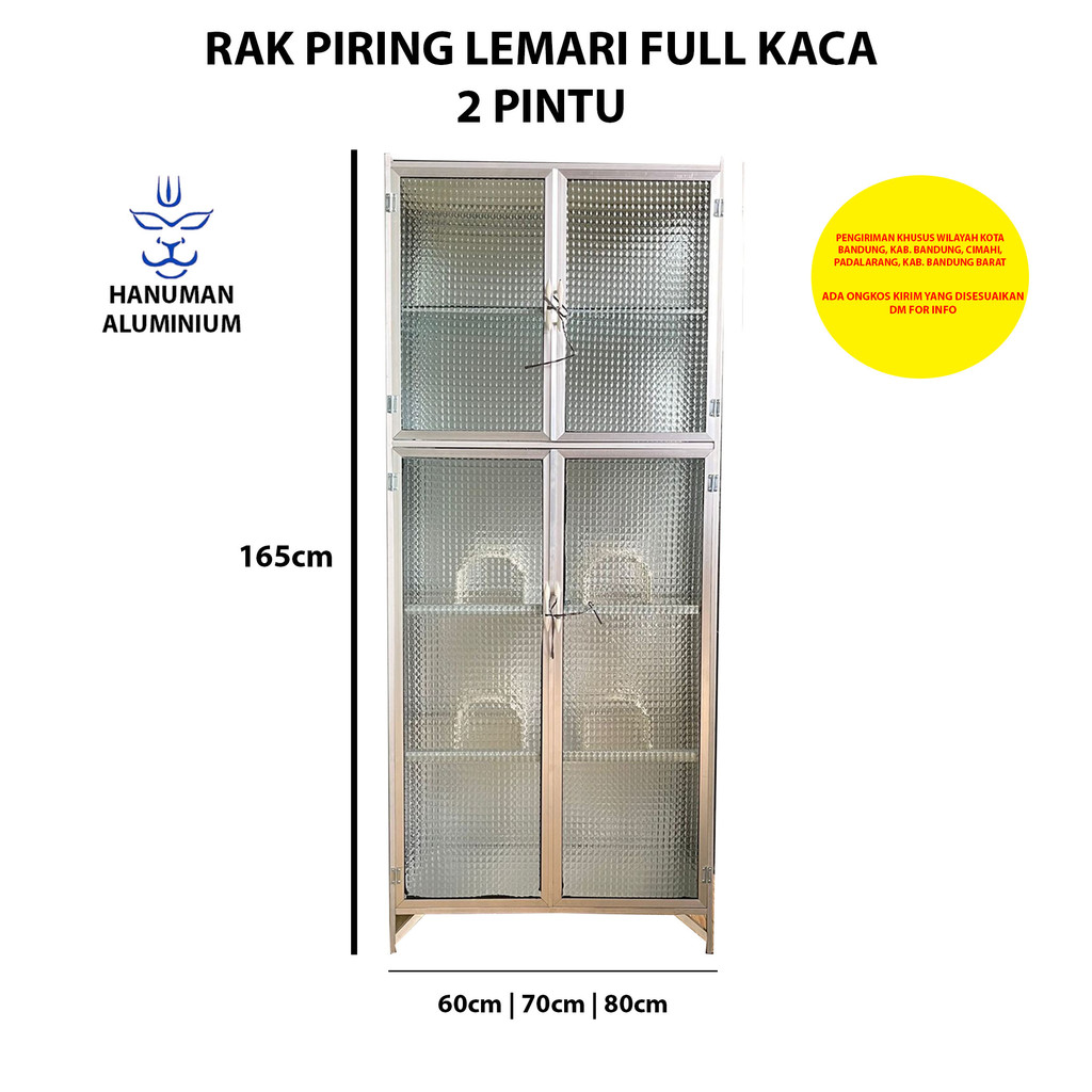 HANUMAN ALUMINIUM Rak Piring Lemari Full Kaca 2 Pintu (60cm | 70cm | 80cm) (PENGIRIMAN KHUSUS WILAYAH KOTA BANDUNG)