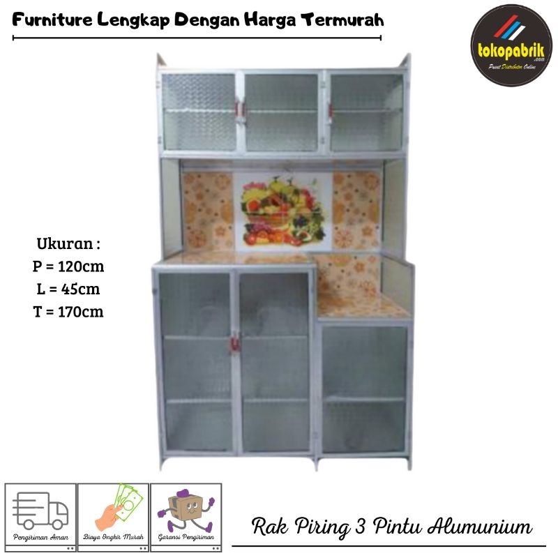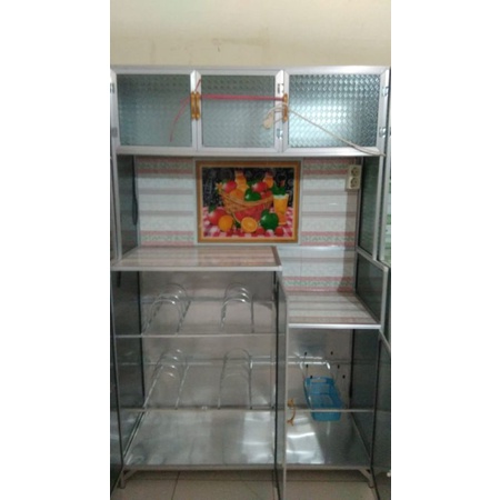 Rak Piring 3 Pintu Alumunium Kaca Keramik / Lemari Dapur Minimalis Murah Bandung Cirebon