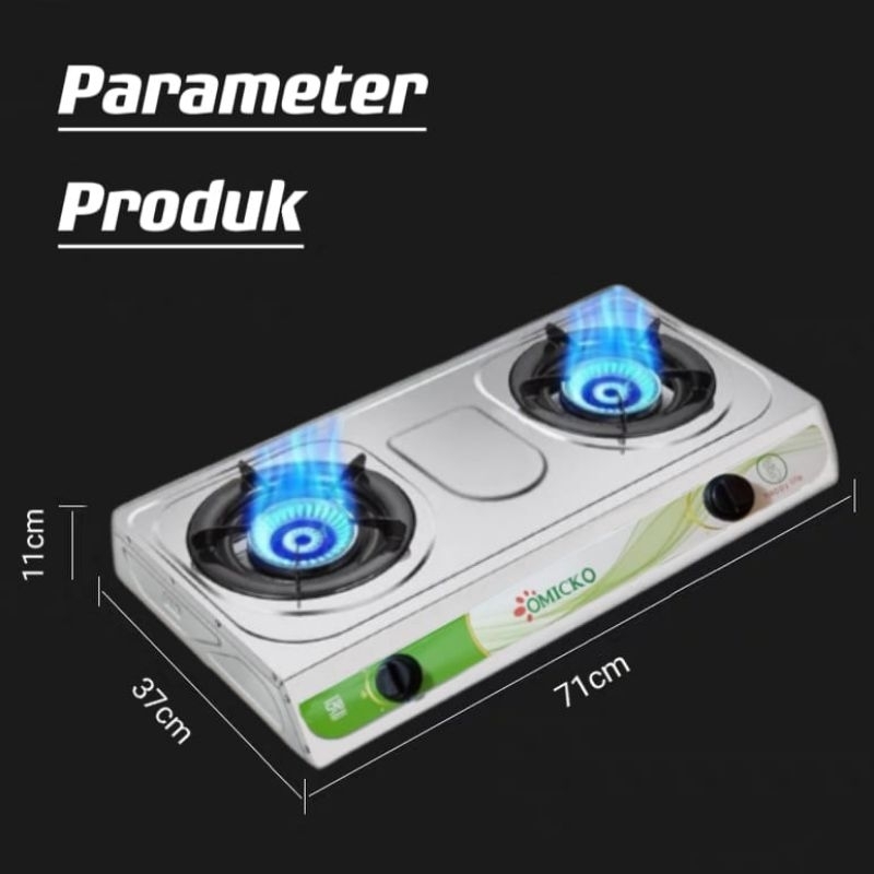Kompor Gas 2 Tungku / OMICKO Kompor Stainless 2 Tungku Anti Karat / Kompor Stainless 2 Tungku Gas Api Besar