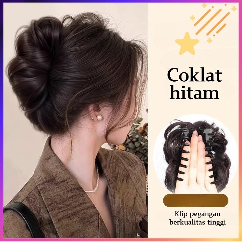HIL-6614 Wig kepala kuncup bunga wig Sanggul Jepit Rambut Palsu Ponytail Model Ekor Kuda Konde Rambut Palsu Cepol Jedai