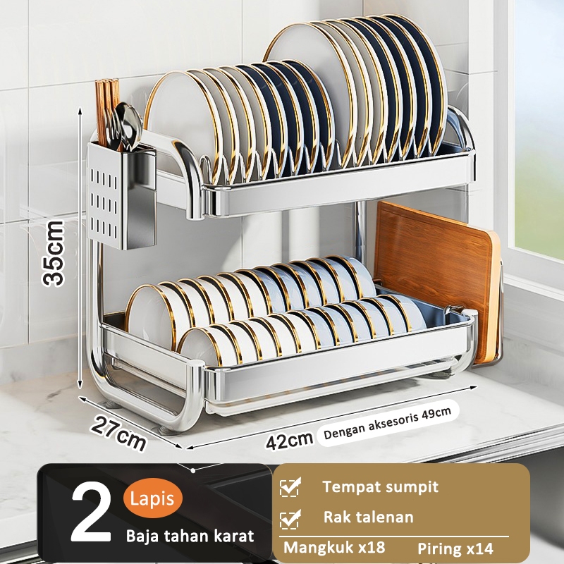 Rak Piring Stainless Minimalis Rak 2 Susun serbaguna Berkualitas Murah Original - Rak Piring Stainless Termurah