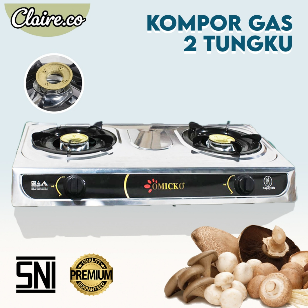 Kompor Gas OMICKO 2 Tungku Stainless Steel / Kompor Gas KM-202 / KM-202 (2 TUNGKU) GARANSI RESMI