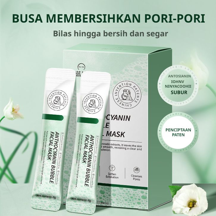 JUELREOU5g12 kantong Masker gelembung antosianin yang mengecilkan pori-pori dan memutihkan/masker untuk komedo dan jera