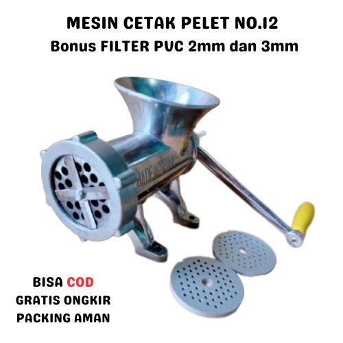 Mesin Cetak Pelet Manual No.12 Pisau Luar Mata 4 Bonus Saringan PVC 2mm dan 3mm Mesin Pembuat Pakan Voer Pur