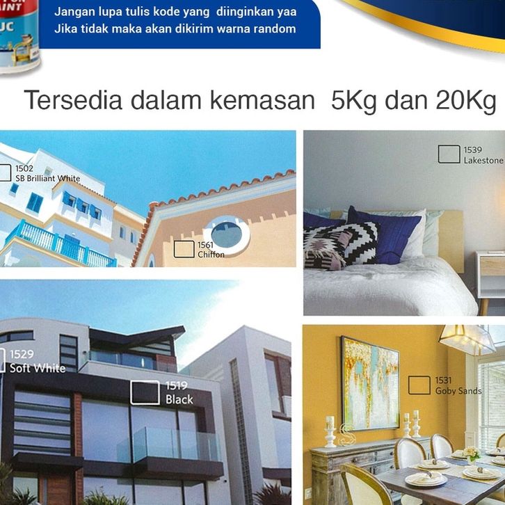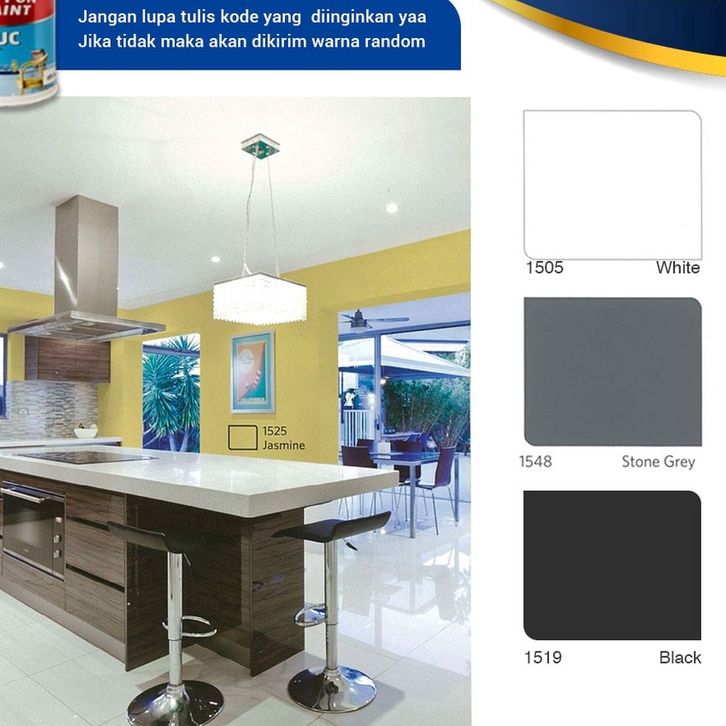 001, atlantic 1541, baby baby 1558, barley white 1515, blue beauty 1526, blue white 1503, bright green 1657, brilliant white 1502, cafe latte 1556, candy pink 1562, chiffon 1561, copper grey 1549, cream 1518, durian 1514, extra white 1501, fresh green 1524, goby sands 1531, graycloth 1550, green freeway 1540, happy fuschia 1554, hijau telor 1154, hitam 1519, ivory 1117, jasmine 1525, lakestone 1539, lavender print 1553, lilac dream 1559, lily white 1509, lime green 1546, marina 1534, moon glow 1671, orange torch 1131, peace blue 1555, pink posy 1552, putih 1505, sand storm 1560, soft white 1529, stone grey 1548, sunset 1516, sunshine 1557, swimming blue 1547, tangerine 1532, tropica grey 1522, victoria 1523