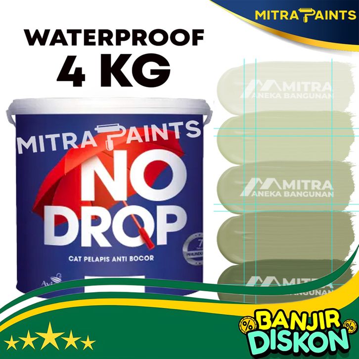 BONUS KUAS/ CAT TEMBOK WATERPROOF NO DROP ANTI BOCOR 4 KG / N12 SAGE GREEN HIJAU