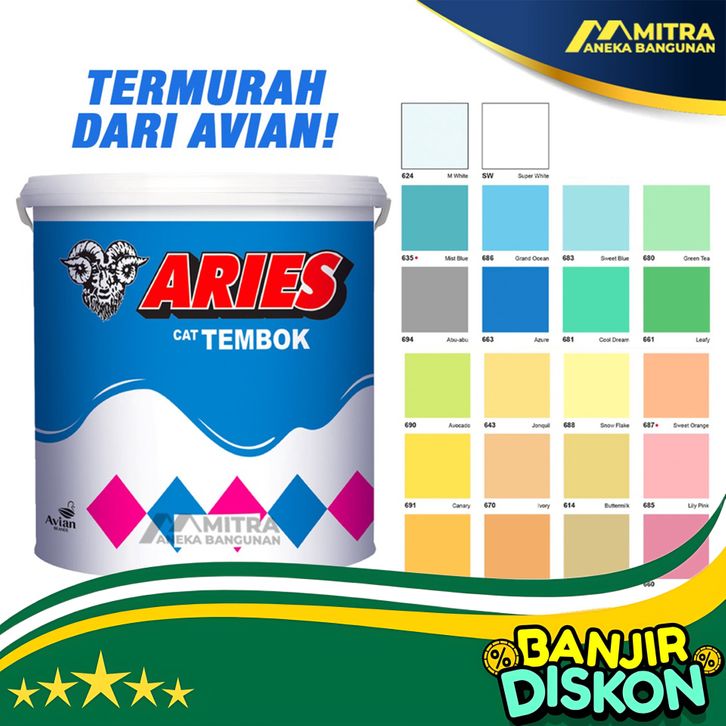 BONUS KUAS/ CAT TEMBOK ARIES AVIAN 5 KG /CAT TEMBOK MURAH / CAT DINDING INTERIOR / CAT PLAFON GRC GYPSUM EKONOMIS