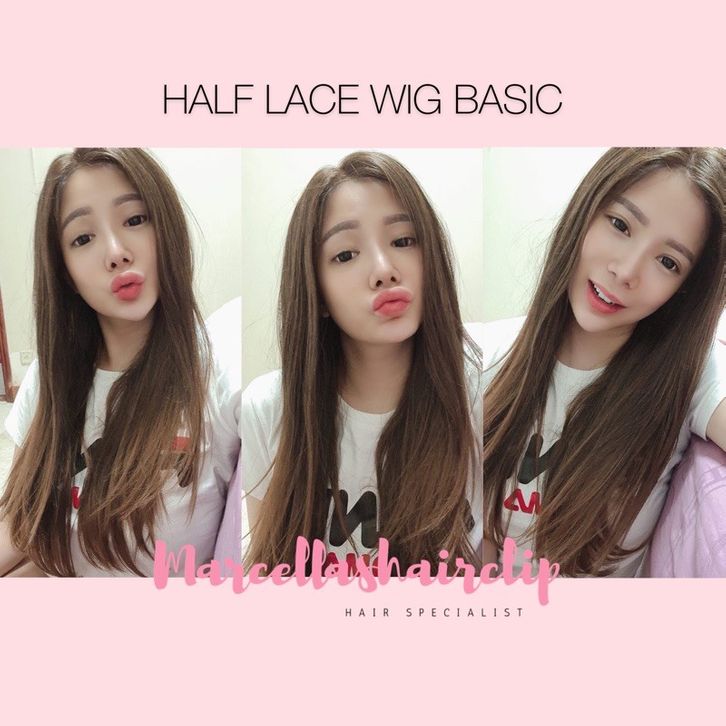 Half Lace Wig Basic AKEMI - Lurus 60cm Rambut Palsu Wanita Dewasa Wig Natural Panjang Dengan Renda Kain Bebas Belahan