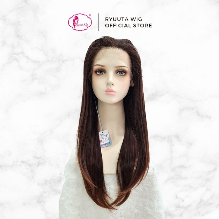 Ryuuta Wig Deep Part Half Lace Wig Lurus Panjang Miya Black Brown 28 inch 70 cm