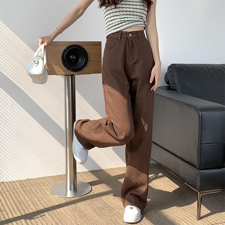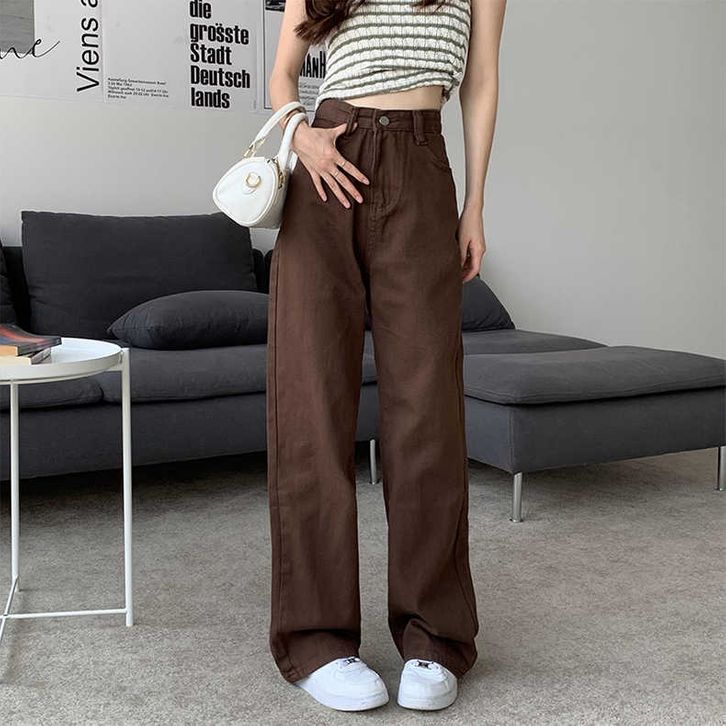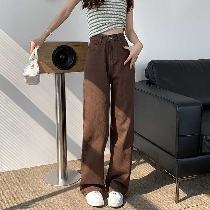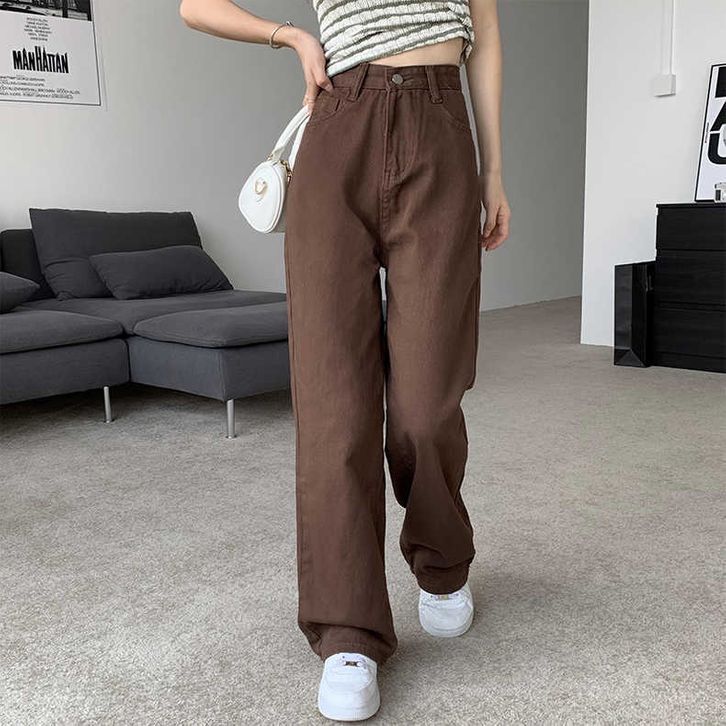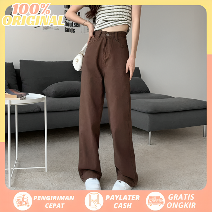 𝐋𝐔𝐋𝐔 𝐉𝐄𝐀𝐍𝐒✅ Coklat New High Waist Kulot Kekinian Celana Jeans Panjang Wanita